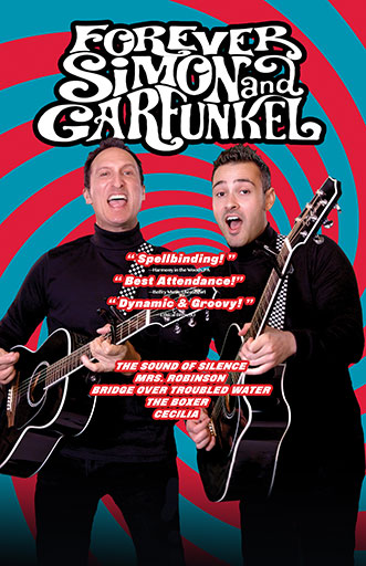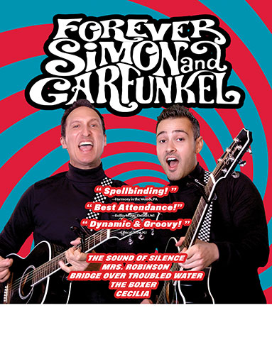 Forever Simon & Garfunkel: A Tribute celebrates the best selling duo in rock’n’roll history. With humor, soaring energy, charm, and laser precise harmony, Sean Altman & Jack Skuller lead the audience on a concert journey through Paul Simon and Art Garfunkel’s teenage roots, their early success as a groovy folk act, their global dominance as hit-makers, and even some of Paul Simon’s solo career. The Sound Of Silence, Bridge Over Troubled Water, Mrs. Robinson, I Am A Rock, The Boxer, Homeward Bound, Cecilia, Hazy Shade Of Winter, Feeling Groovy, Me & Julio Down by the Schoolyard, Kodachrome, and many more!
